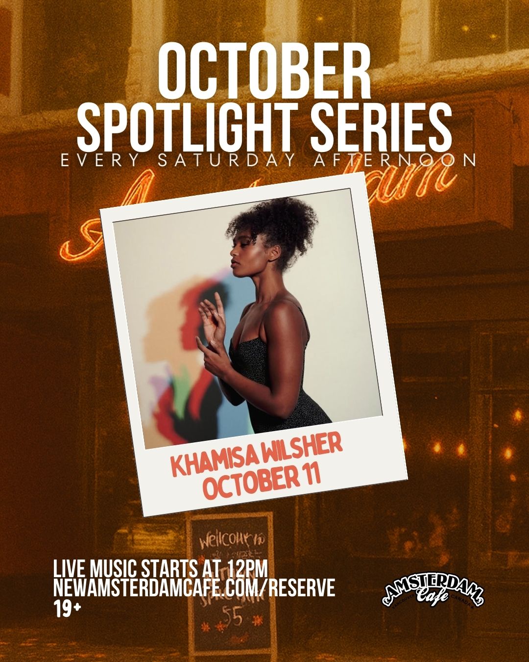 New Amsterdam Cafe 301 W Hastings, Vancouver, BC, Canada ✨ October Spotlight Series ✨Saturdays in October are made for live music, tasty bites, and mellow café vibes. Join us each week as we shine a spotlight on incredible local talent, paired with complimentary mocktail mimosas and fresh popcorn for all guests. 🎶 Artist Lineup: Vanessa Hillman – October 4 & 25 @ 12pm […]
